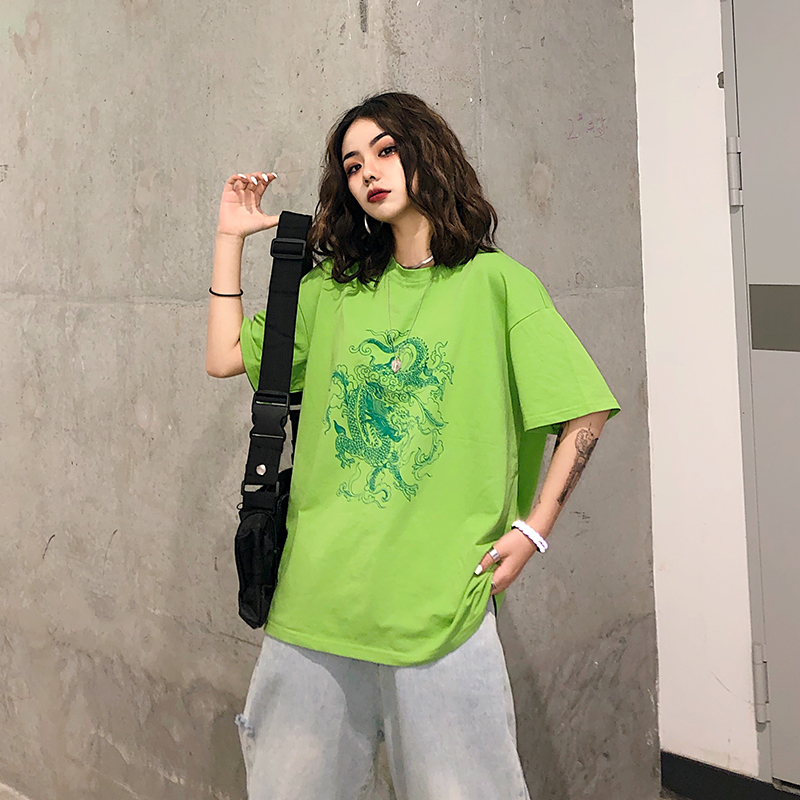 Harajuku vintage Fun dragon women T-shirt short sleeve Tees Ulzzang clothes vegan Cotton gothic mesh top punk shirt