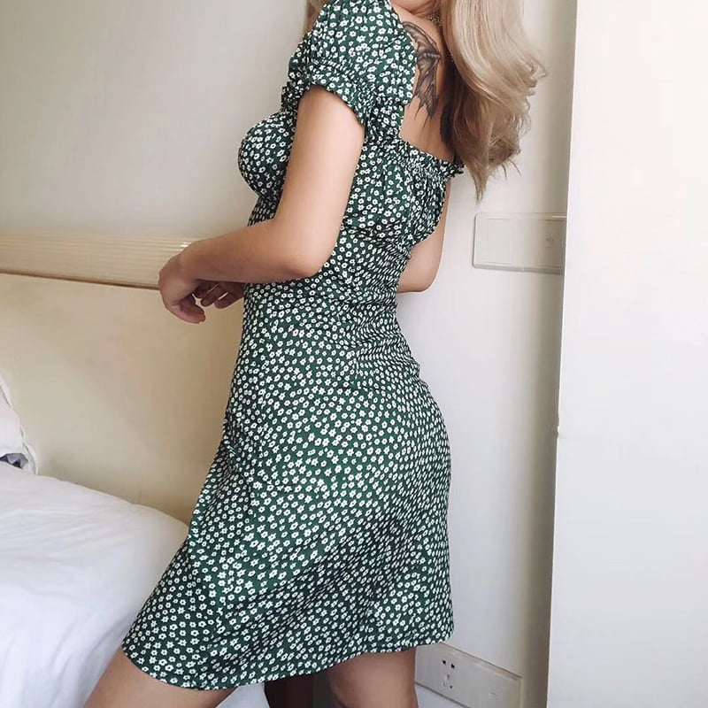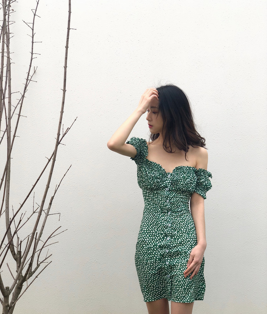 kawaii green floral off shoulder mini sexy club dress