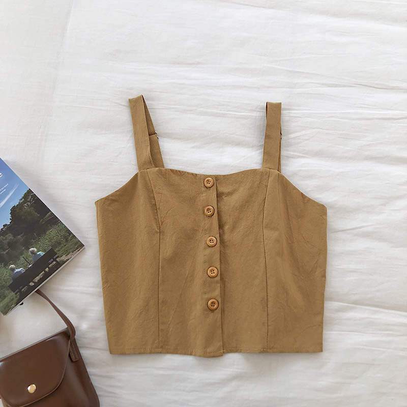 Women Buttons Tank Tops Knitting Sexy Beach Spaghetti Camis Female Bare Midriff Solid Top Feminino Crop Summer