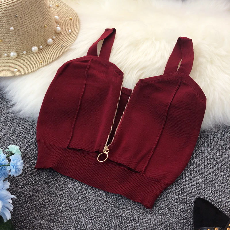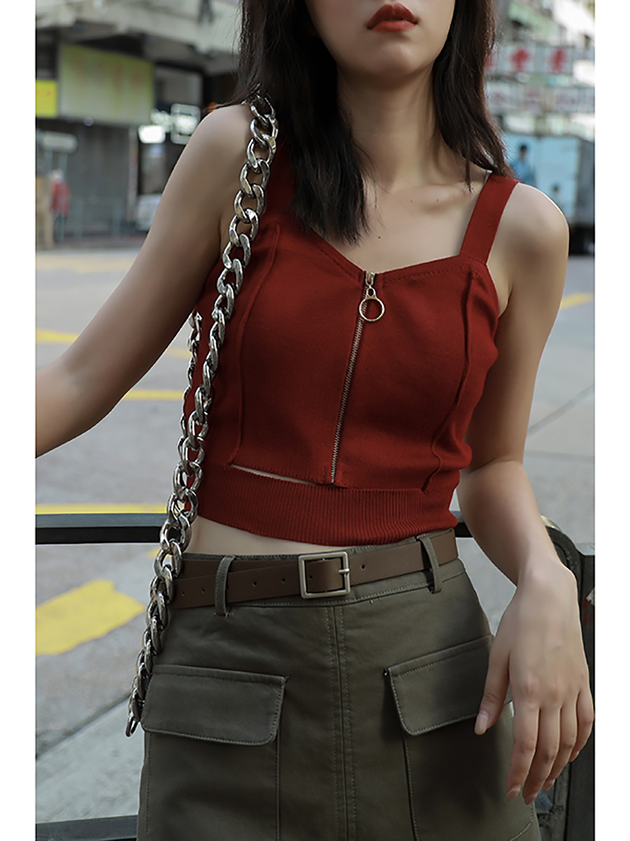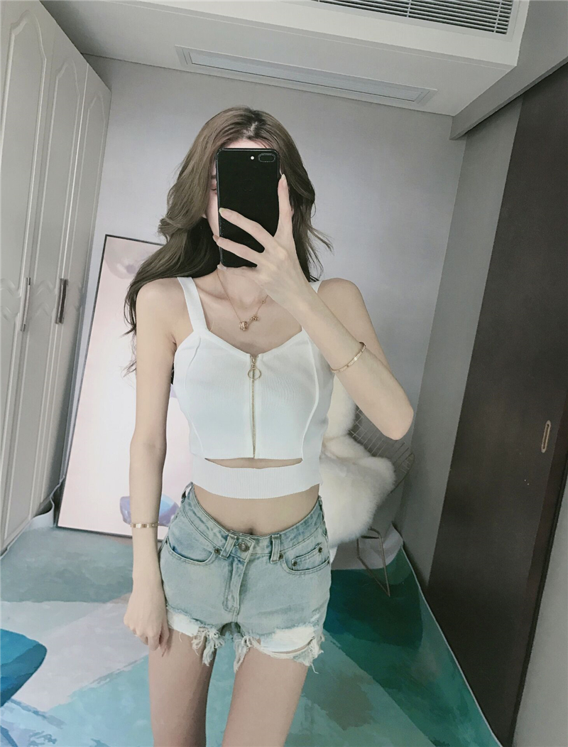 Sexy Zipper Knitting Camisole With Hole Tank Tops