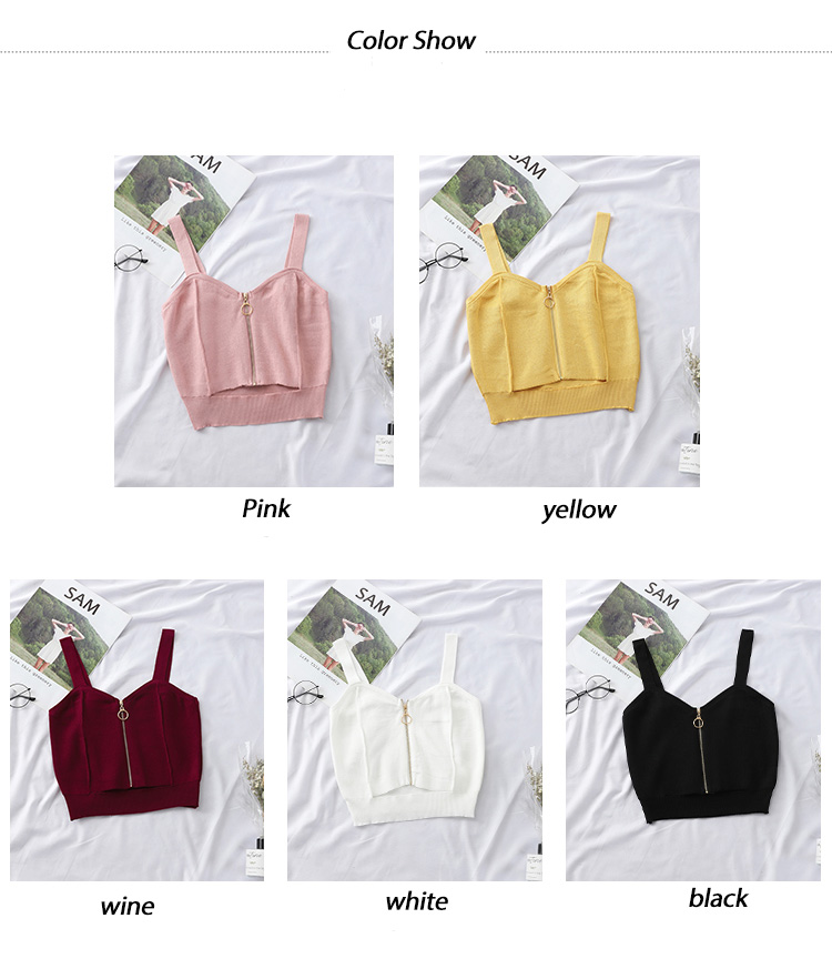 Tops Women Crop Top Club Sexy Zipper Knitting Camisole With Hole Female Tank Tops Ladies Sleeveless Solid Strap Top Women