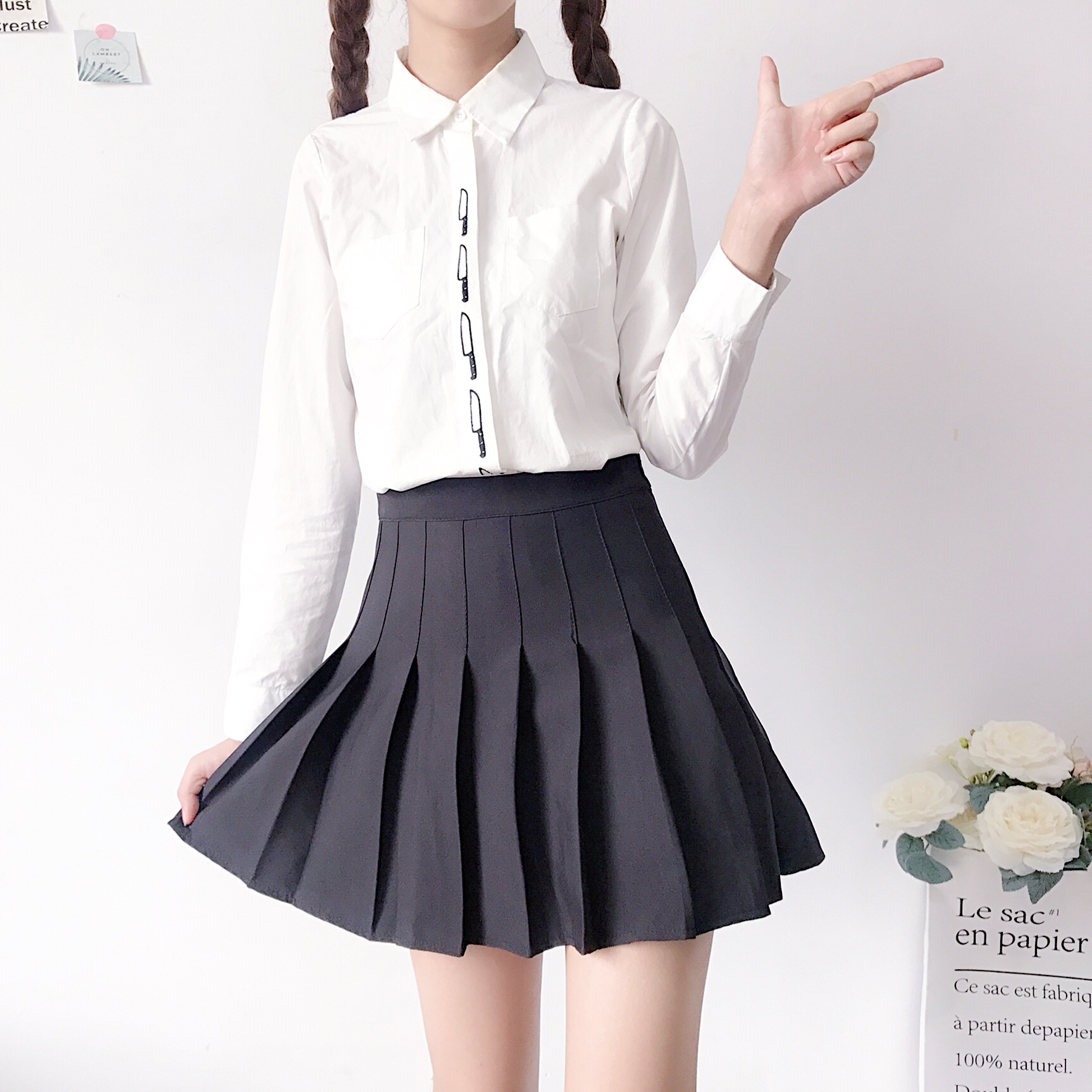 High Waist Chic Stitching Skirts Summer Student Pleated Skirt