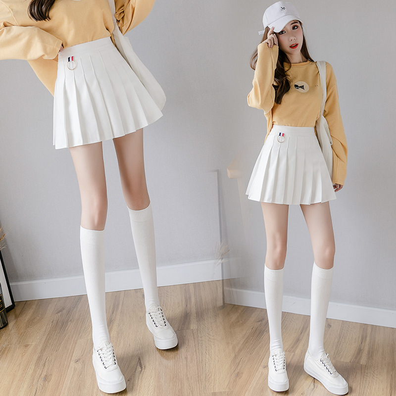 High Waist Chic Stitching Skirts Summer Student Pleated Skirt