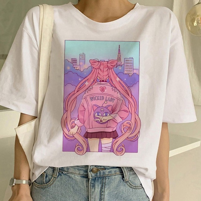 Sailor Moon Summer New Fashion T Shirt Women Harajuku Short Sleeve Fun Ulzzang T-Shirt Cute Cat Tshirt Cartoon Top Tees Female