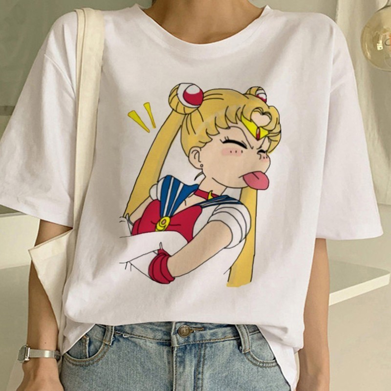 Sailor Moon Summer New Fashion T Shirt Women Harajuku Short Sleeve Fun Ulzzang T-Shirt Cute Cat Tshirt Cartoon Top Tees Female