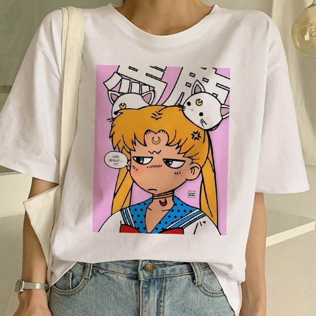 Sailor Moon Summer New Fashion T Shirt Women Harajuku Short Sleeve Fun Ulzzang T-Shirt Cute Cat Tshirt Cartoon Top Tees Female