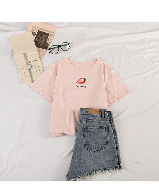 Korean Embroidery Loose basic t shirt summer short Sleeve Simple T-shirts for Women harajuku Kawaii funny student tshirt