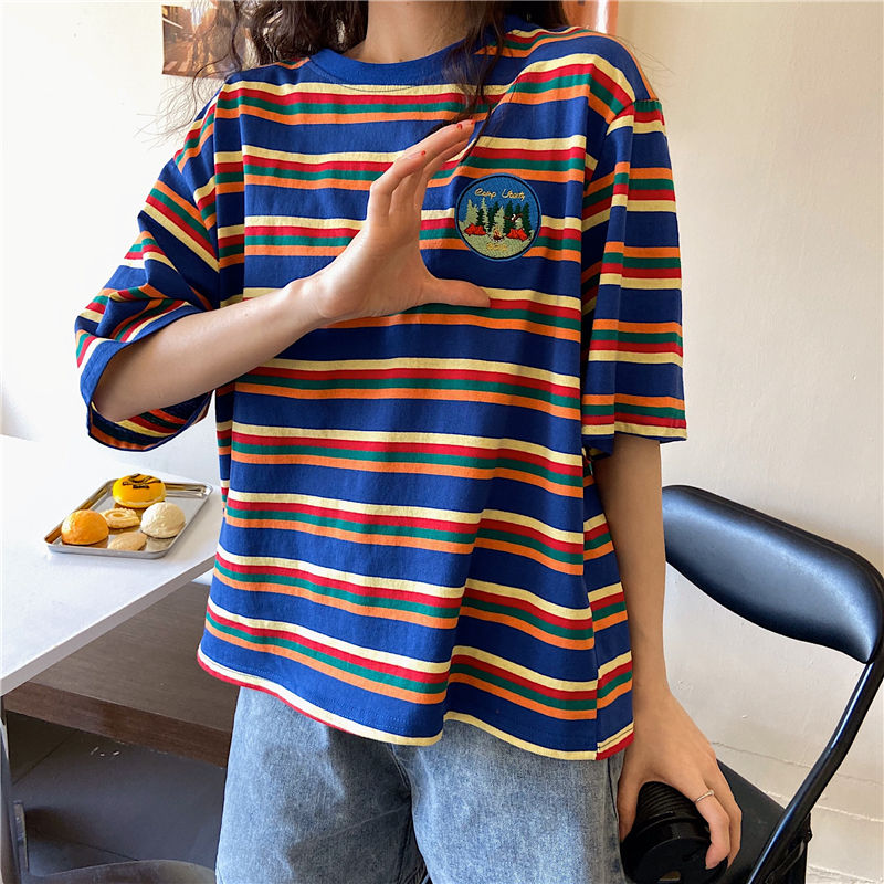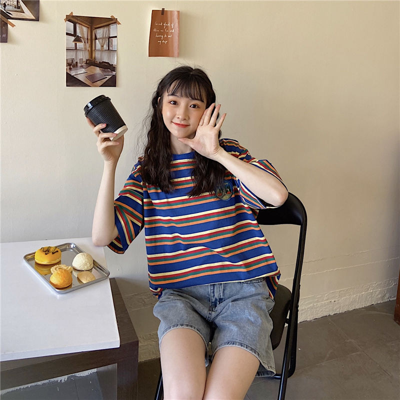 2020 summer Women Casual Loose stripe Printed t-Shirts Ulzzang Harajuku O-neck Short Sleeve cozy student tee Tops Poleras Mujer