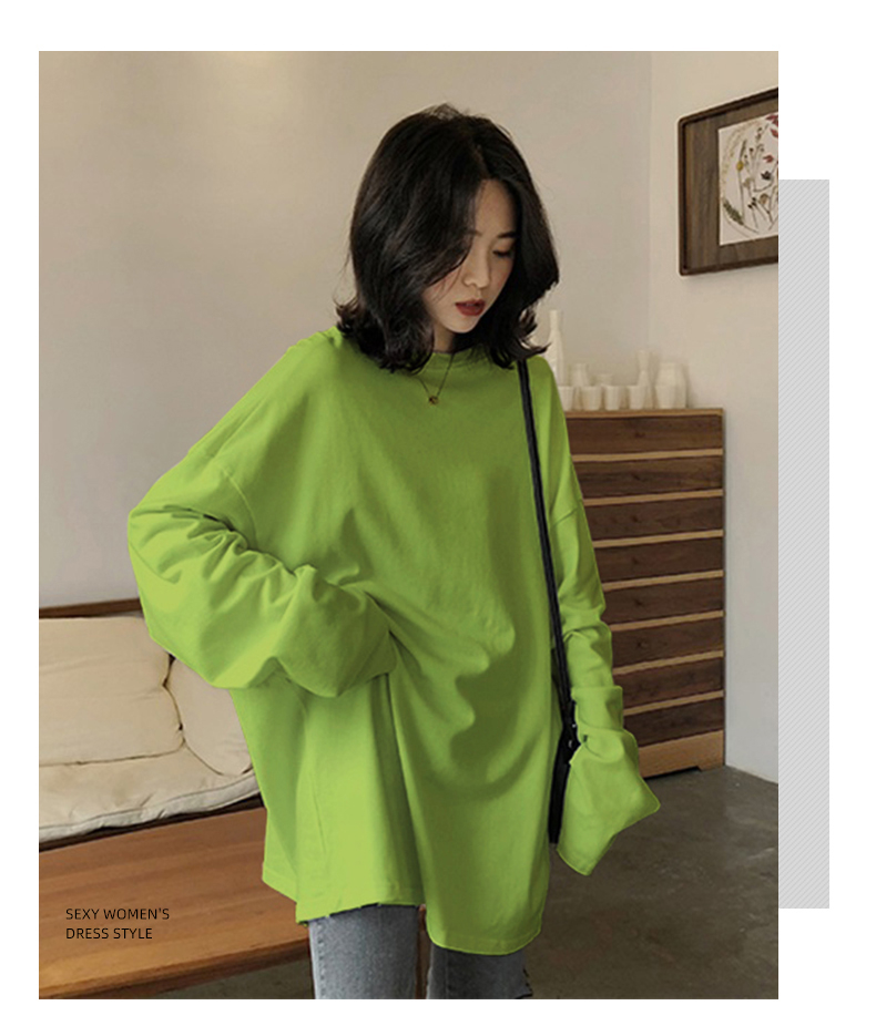 2020 spring Solid Simple oversized tshirt harajuku long T Shirt Women kawaii T-shirts Women White yellow long Sleeve Tops
