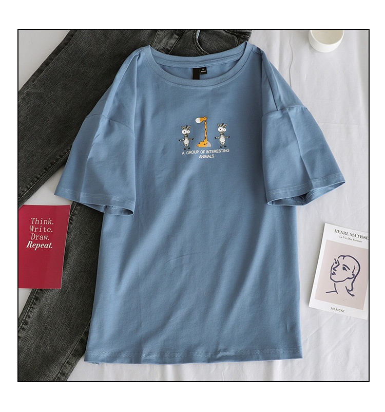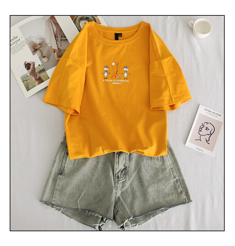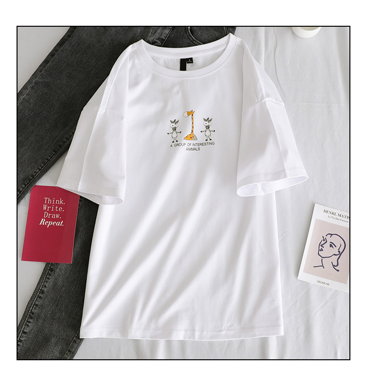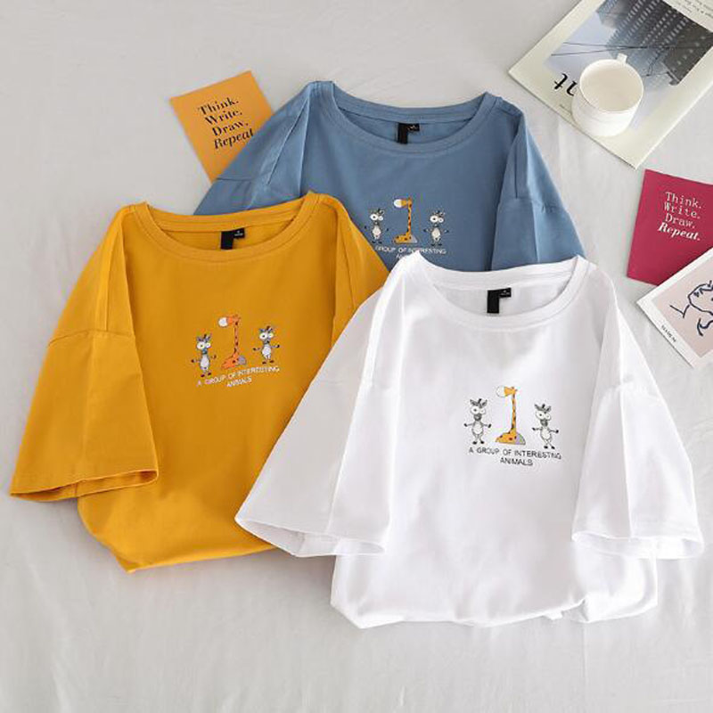 Cute Cartoon Animals Print T-shirt Woman New Fashion Spring Summer Short Sleeve O Neck Women Tops Loose Tshirt Women