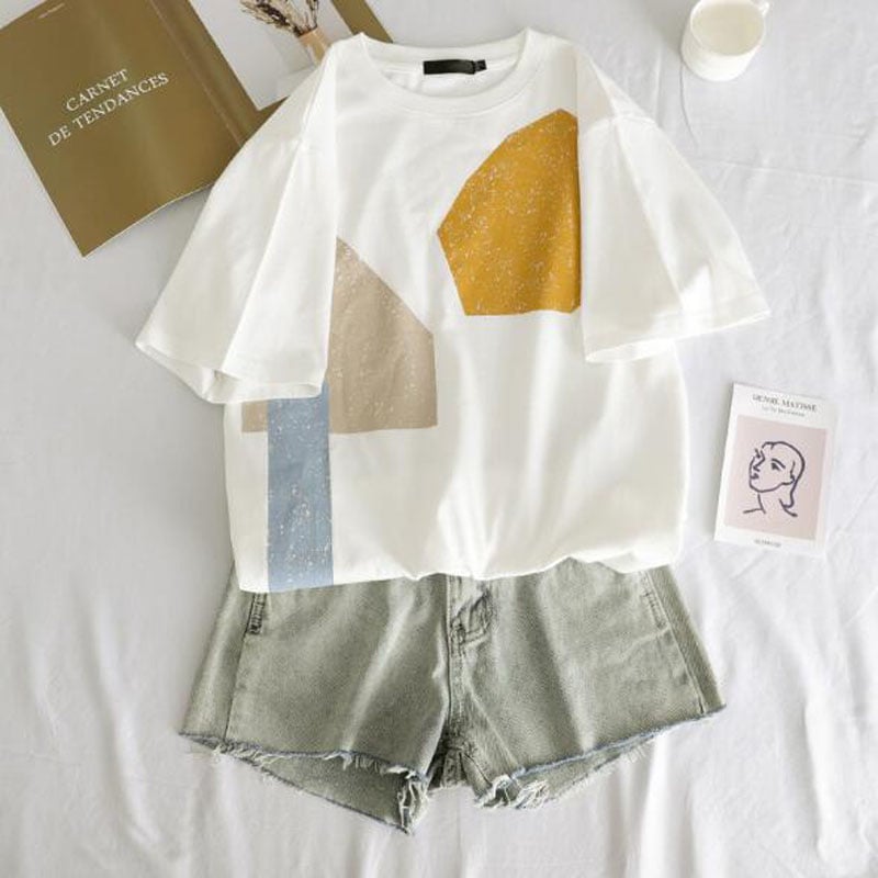 Fashion Print Women Tshirt Spring Summer New Style Short Sleeve Cotton Spandex Women T-shirt Casual Loose Women Tops