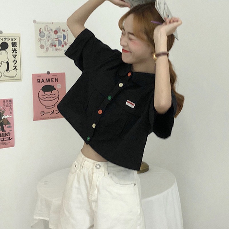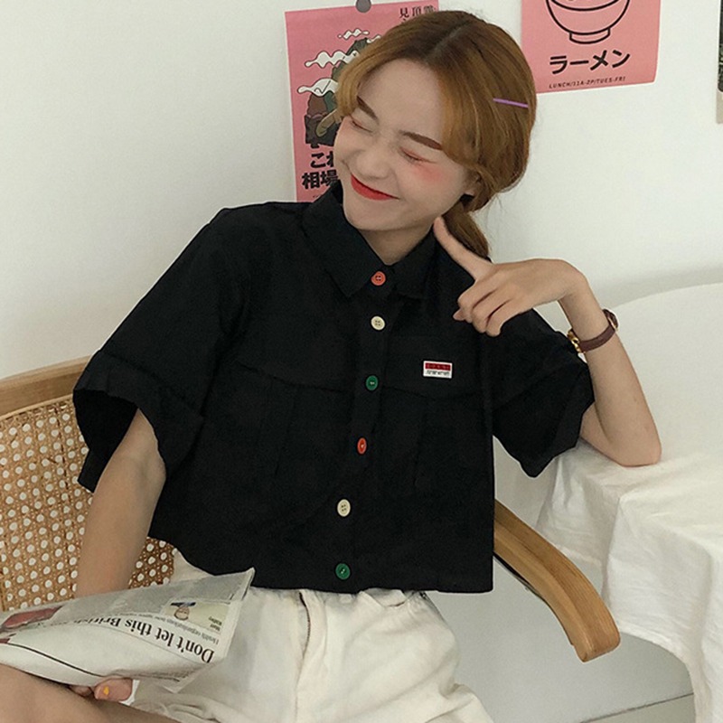 Women's ShirtHarajuku Short Sleeve Polo Collar Casual Cotton Preppy Top Girls Fashion Letter Embroidery Blusas Femininas