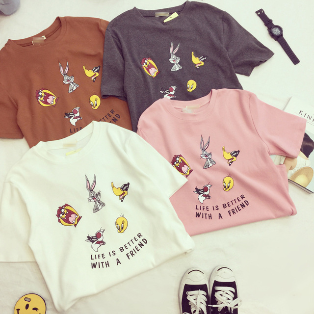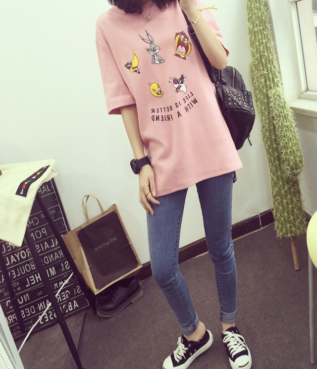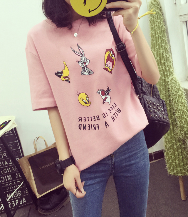 Cute Cartoon Print Tshirt Women Spring Summer New Style Short Sleeve O Neck Cotton Women Tops Tees Loose Woman T shirt