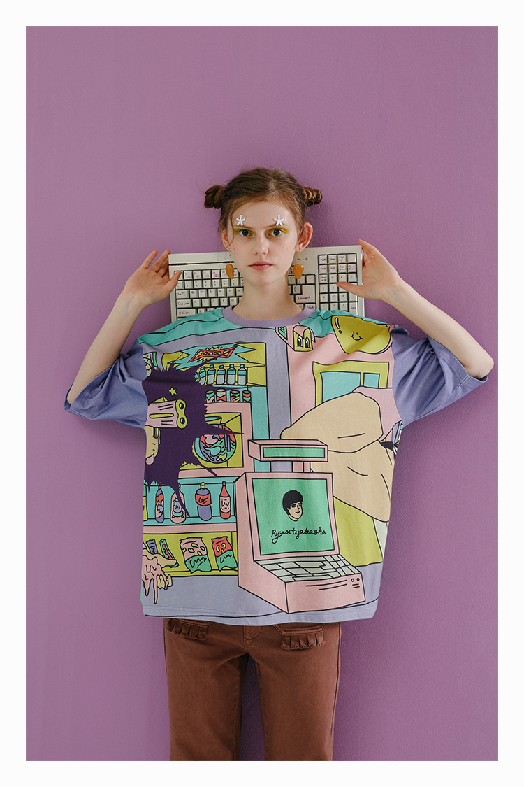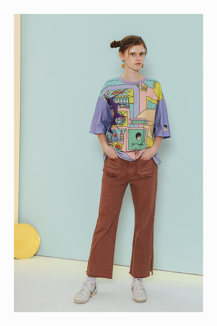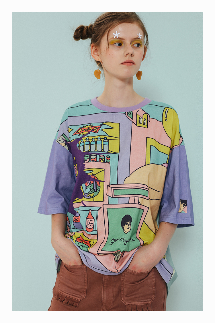 Mixed Colors Graffiti Womens Loose Tee Shirt