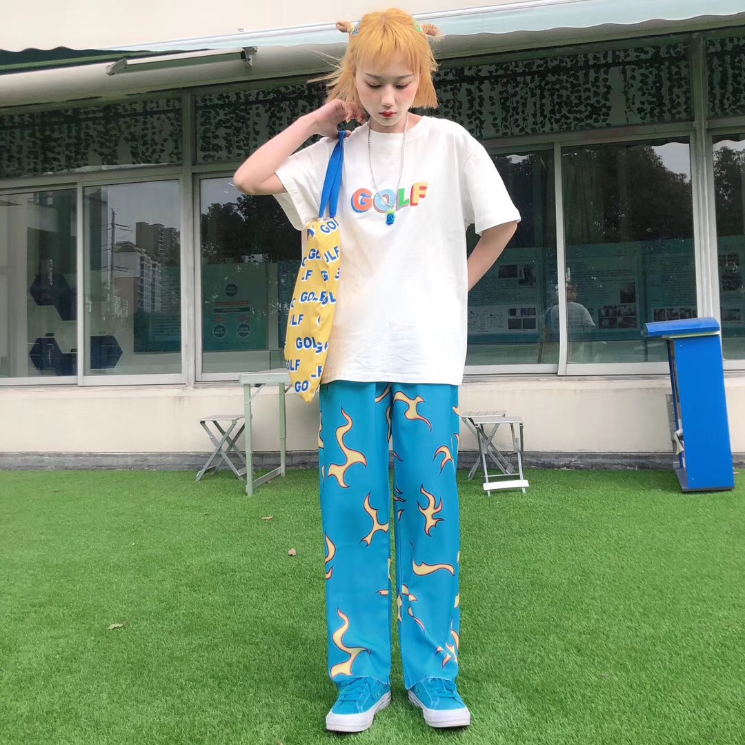 Spring New Fashion Streetwear Women Pants Full Length Lightning Print Blue Trouser For Femme Elastic Waist Straight Pants Capris