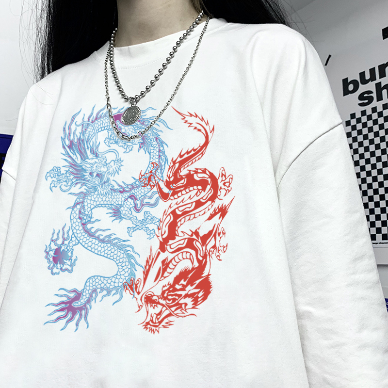 New latest dragon pattern female T-shirt O-neck thirst printing casual short-sleeved street t shirt harajuku top brandy clothing