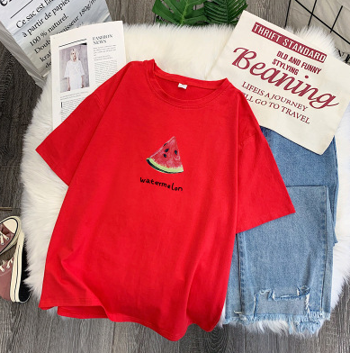 Women's watermelon print t-shirt 2020 new short sleeve t shirt women spring and summer loose Unisex Harajuku Tshirt ins shirt