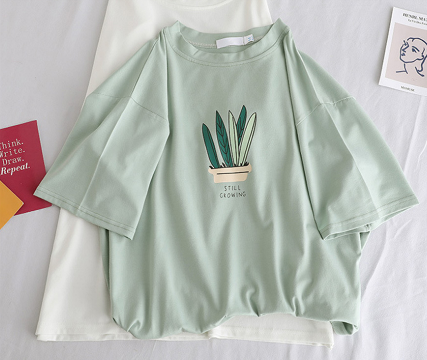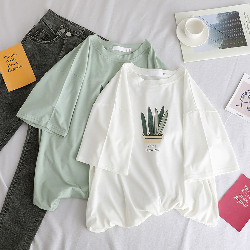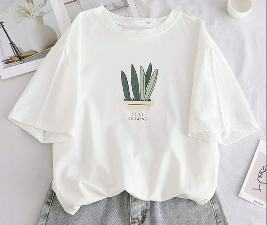 fashion still growing letter t-shirt women short sleeve summer couples t shirt women bonsai print t-shirt unisex harajuku tshirt