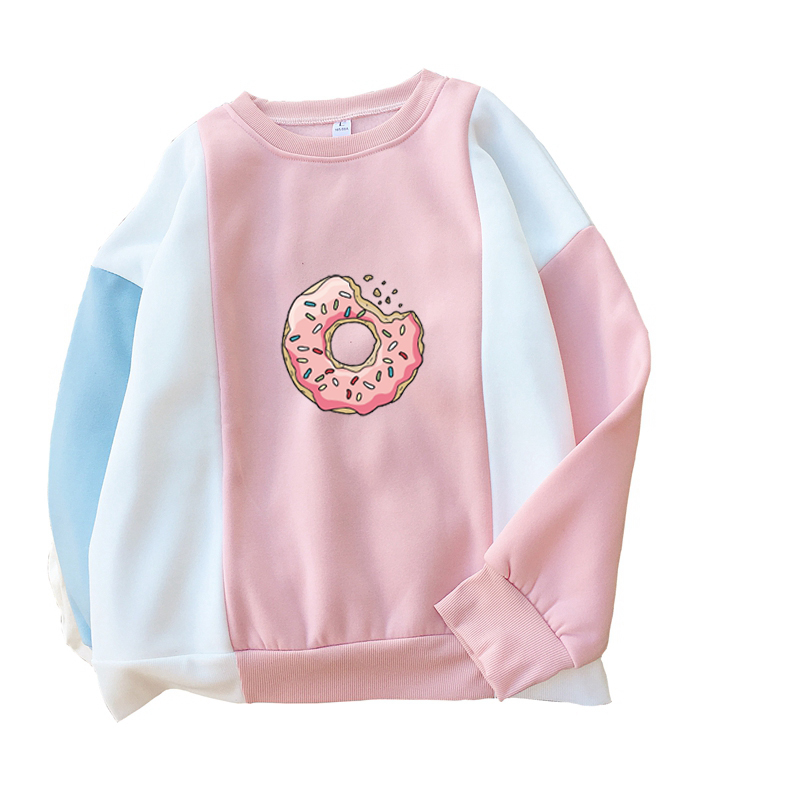 Women Sweatshirt Harajuku Kawaii Donuts Printing Cute Hoodies Patchwork Pastel Contrast Color O-neck Winter Autumn Clothing Top