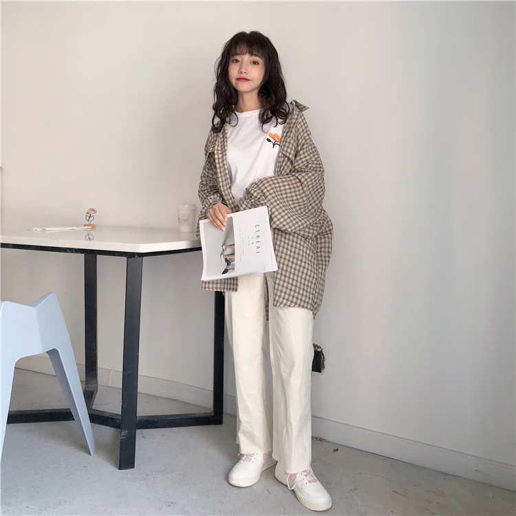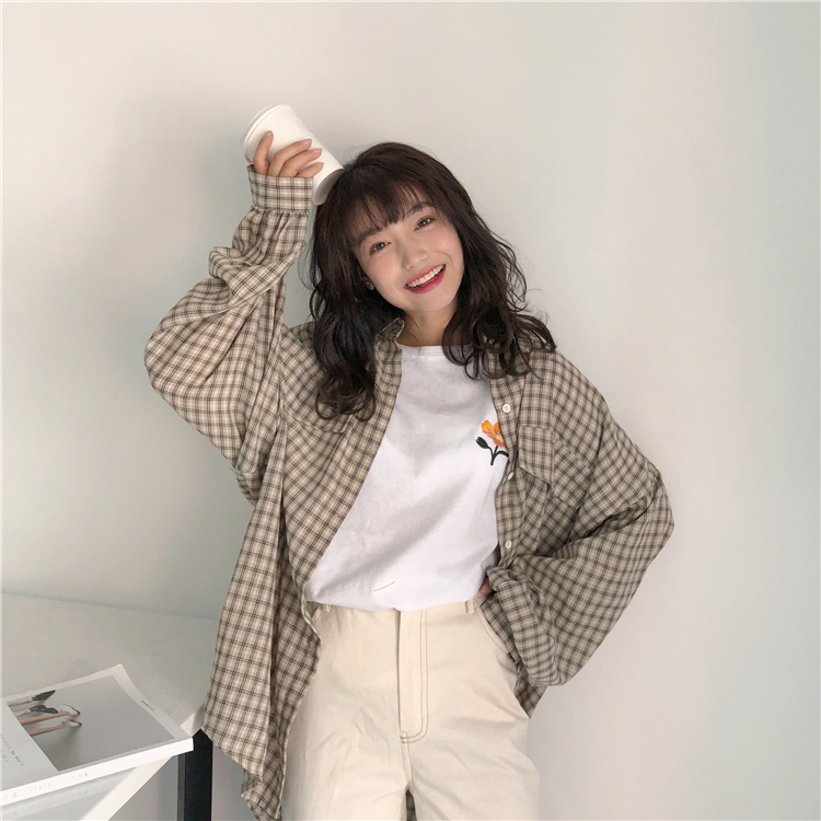 Shirts Women Kawaii Simple Casual Plaid Loose Korean Style Daily All-match Harajuku Cute Student Womens Clothing Fashion Vintage
