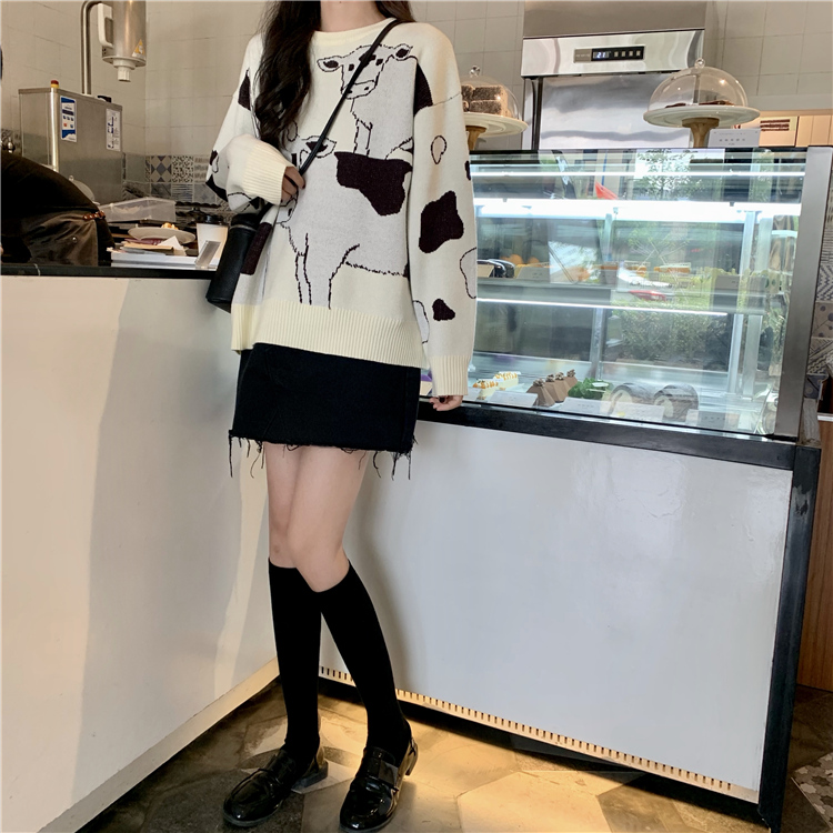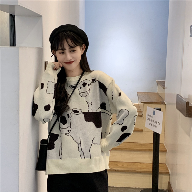 Vintage Casual Loose Lazy Cow Sweater Female Korean Harajuku Women's Sweaters Japanese Kawaii Cute Ulzzang Clothing For Women