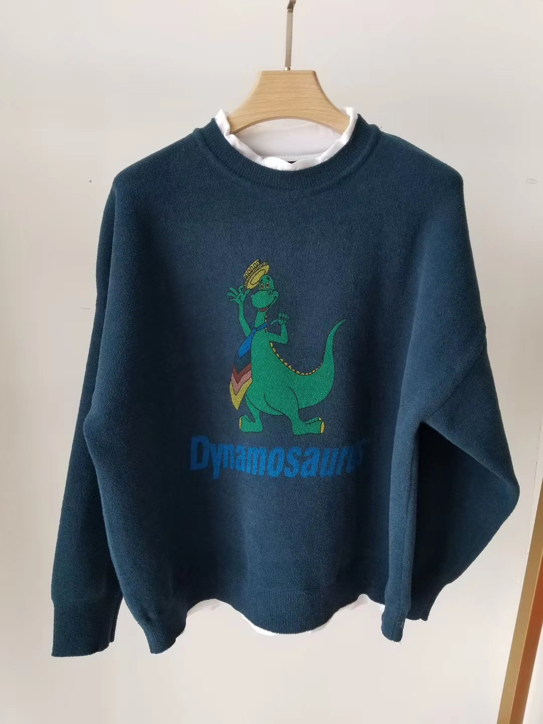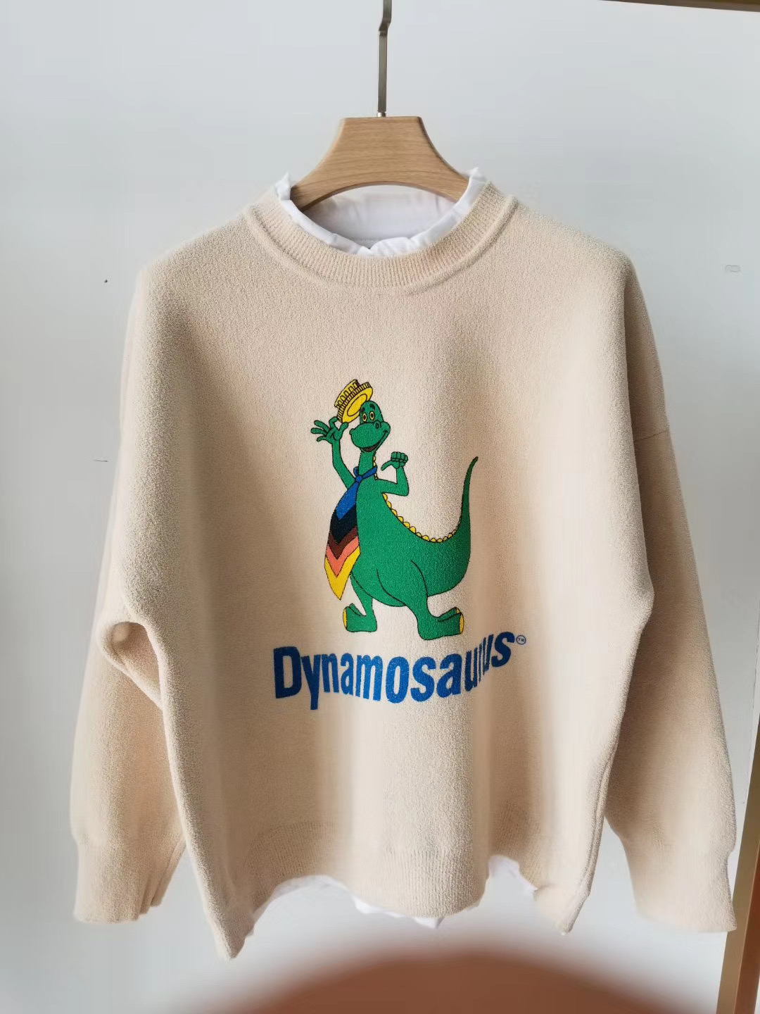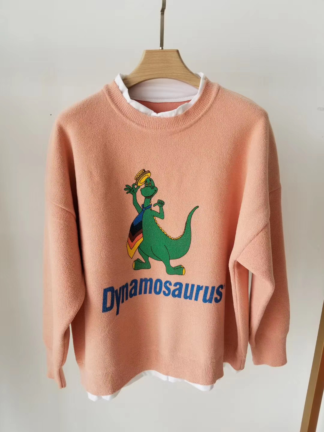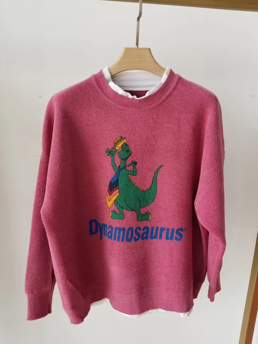 Harajuku Fall Winter New Fashion Cartoons Suede Sweater Long Sleeve O-Neck Women Casual Warm Letter Pullovers