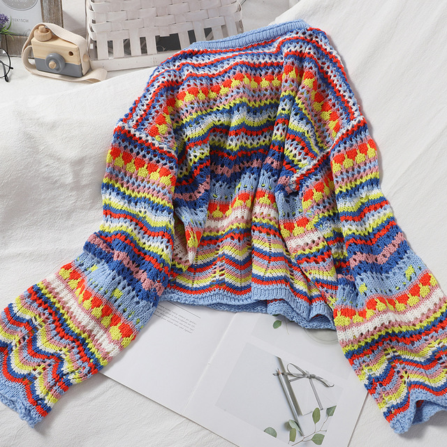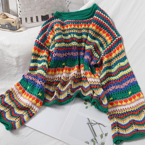 Women Streetwear Thin Knitted Sweater 2020 Spring Autumn Ne O-Neck Full Striped Sweaters Loose Casual Sweet Wild Pullover