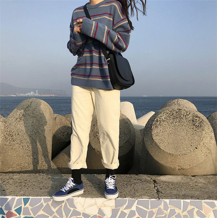 Pullovers Women Soft Autumn O-Neck Sweaters Chic Daily Tops Womens Pullover Sweet Student Striped Harajuku Knitted Loose Outwear
