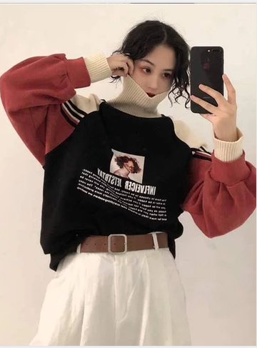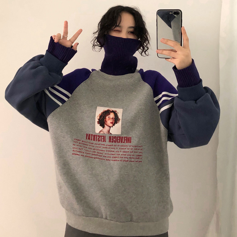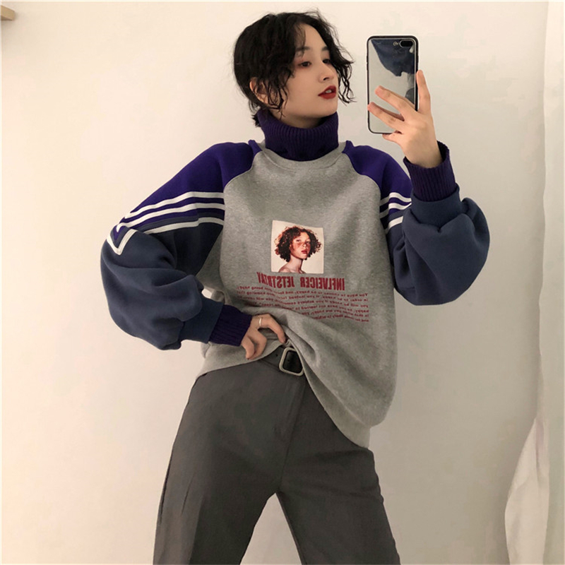 2020 Hoodie Sweatshirt Women Winter Oversize Tops Fashion Pattern Printed Sweatshirt Autumn Turtleneck Outerwear Warm Pullover