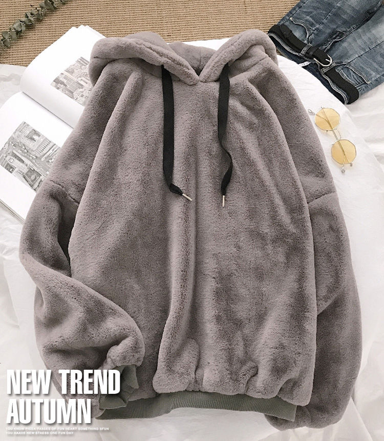 Autumn Winter Coats Solid Sweet Hooded Women Harajuku Loose Casual Warm Hoodies Ladies Fleece Flannel Pullover Female Sweatshirt
